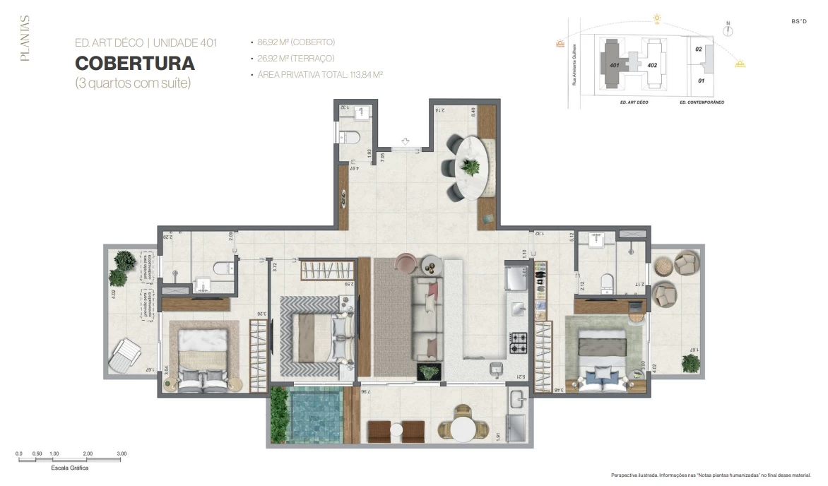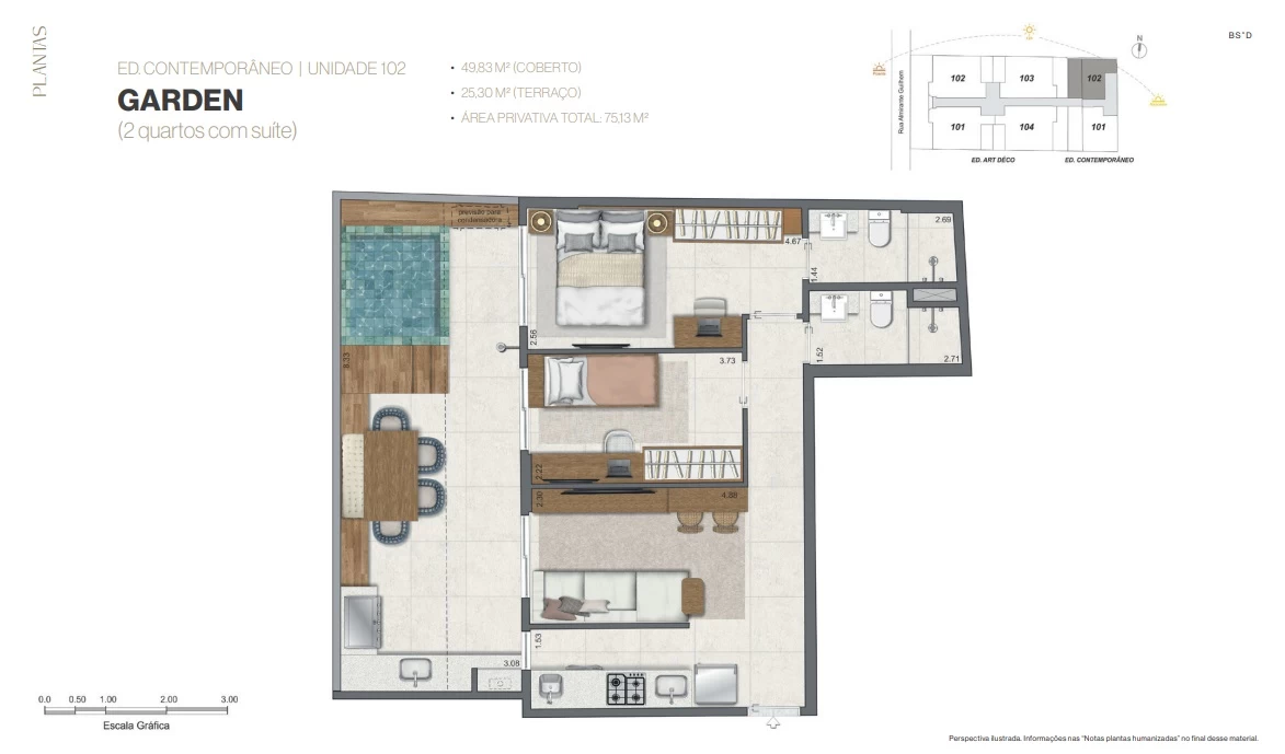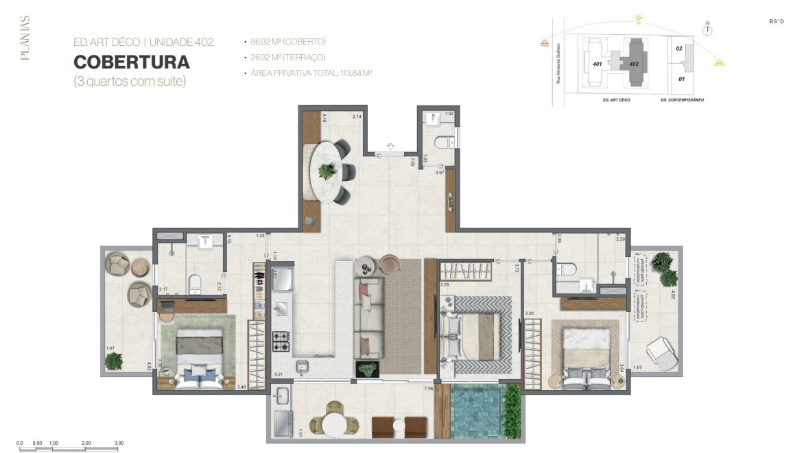Um projeto que permite a escolha entre diversas tipologias e plantas, proporcionando liberdade para viver o melhor do Leblon, com a leveza dos ambientes integrados, que trazem a sensação de convivência e conexão entre o interno e o externo.